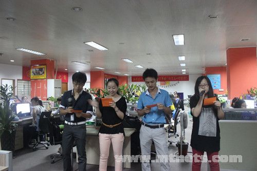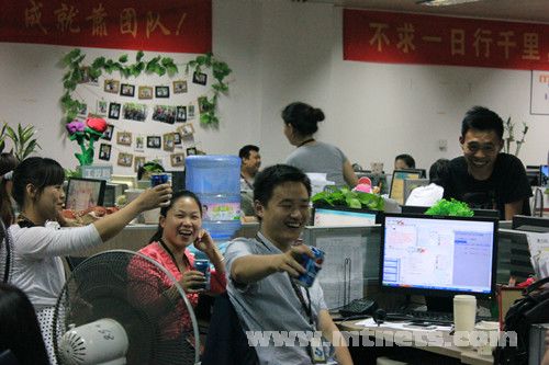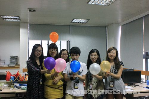 下午,“幸运九九九”的活动火热开展。公司每位伙伴都可以得到一个五彩缤纷的气球,而其中一些同事的气球里面是有幸运奖品的,在主持人的号召下,大家喊出:势如破竹不可挡,兴旺宝来年更火爆,大家一起“爆”。办公室一瞬间仿佛鞭炮齐鸣般,充满了欢乐的气氛。吃着寓意展翅高飞的鸡翅,喝着百事可乐,抱得奖品归。