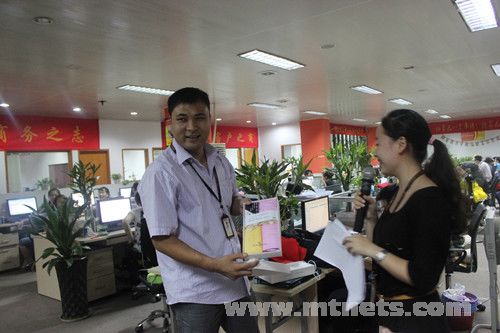 市场部的郭威赢得精美竹炭毛巾礼盒,向大家展示奖品